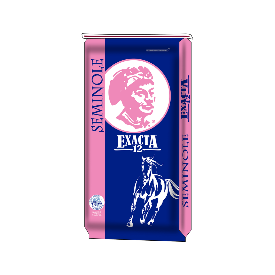 Seminole Exacta 12™ is a premium textured feed made with highly digestible fibers, top-quality grains, yeast culture, and a unique blend of molasses. Formulated with chelated trace minerals which increases their bioavailability to support metabolic functions, antioxidants to protect cells against the effects of free radicals, and controlled starch levels to reduce the risk of metabolic upset, Seminole Exacta 12™ is ideal for mature, active pleasure horses and ponies.